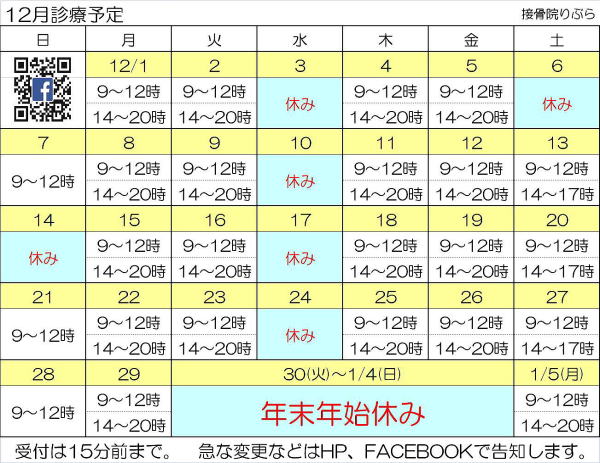 ≪12月の休診≫ 3・6・10・14・17・24・30・31